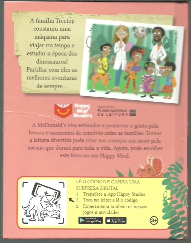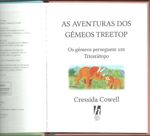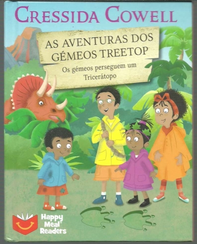 AS AVENTURAS DOS GÉMEOS TREETOP. Os gémeos perseguem um Tricerátopo. *** Cressida Cowell *** Capa e ilustrações de Artful Doodlers *** [Sem ind. de local]: Hodder Children’s Books [Made for McDonald’s], [Se mind. de ano: 2019 (?)]. (Impresso na China). Colecção: Happy Meal Readers – 8. (15,5 x 12 cm.) com 21 + [3] pp. (a numeração das páginas inclui as folhas que ficam coladas à parte de dentro da capa e da contracapa). Com várias ilustrações a cores. Capa dura. Bom exemplar. capa com pequenas marcas de manuseamento e apresentando alguns vincos na contracapa (mas que parecem ser de origem), encontrando-se, de um modo geral, ainda em bom estado e limpa. Páginas bem conservadas e limpas. *** Presumível primeira edição portuguesa deste livrinho destinado ao público infantil (a partir dos 3 anos de idade), com uma história que decorre na época dos dinossauros. *** Portes: envio gratuito em correio normal (tarifa especial para livros) * envio em correio registado: 1,70