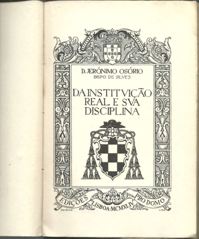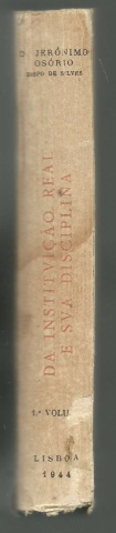 DA INSTITUIÇÃO REAL E SUA DISCIPLINA. *** D. Jerónimo Osório [Bispo de Silves] *** Tradução do Dr. António Jotta da Cruz Figueiredo *** Prefácio: Luís de Almeida Braga *** Lisboa: Edições Pro Domo, 1944 [provavelmente 1945, que é a data do prefácio]. Colecção: Obras de D. Jerónimo Osório – 1. (19 x 12,5 cm.) com LX + [4] + 419 + [5] pp. Capa flexível, com badanas. Exemplar razoável. Capa com evidentes marcas de manuseamento, algo manchada, um pouco empoeirada e gasta e amachucada nas margens e na lombada, onde apresenta mesmo alguns rasgões e esfoladelas. Apesar de envelhecida e um pouco cansada, de um modo geral, está ainda apresentável. Páginas, de um modo geral, em bom estado, embora apresentem um tom amarelecido e algumas pequenas manchas de acidez, não muito frequentes. A parte final do livro apresenta manchas claras e o papel encontra-se um pouco ondulado, talvez por efeito de humidade, mas sem um grande impacto no aspecto geral. Cerca de dois terços das páginas estão ainda por abrir. *** Primeira edição corrente (tendo sido feita uma tiragem especial, numerada, de cento e vinte e cinco exemplares) desta obra, pela primeira vez traduzida em português, datando a sua publicação original, em latim, de 1572 (o mesmo ano da primeira edição de Os Lusíadas), com o título «De Regis Institutione et Disciplina», sendo publicada quase de imediato em Colónia e depois em Paris e que é hoje considerada um dos principais livros do Renascimento. A obra é um tratado sobre o ensino e a educação destinado a D. Sebastião (mas de alcance mais geral), com o propósito de formar um Rei ideal de acordo com a mundividência cristã. As ideias de Jerónimo Osório sobre governação, poder e liberdade mostram surpreendente actualidade, criticando o livro «tanto os vícios da monarquia como os males das repúblicas, defendendo que o rei deve governar homens livres e não escravos, e que o verdadeiro incentivo ao trabalho não deve ser o medo, mas a compreensão do bem comum. O horror à tirania e a defesa da liberdade de pensamento são temas centrais, mostrando que, mesmo durante a Contra-Reforma e a Inquisição, existia espaço para crítica e tolerância em Portugal e Espanha.» O Autor é considerado o maior escritor português em latim do século XVI, tendo as suas obras conhecido ampla divulgação por toda a Europa. Nelas consegue uma síntese brilhante entre a cultura do mundo clássico e a visão cristã da sua época. Invulgar. *** Portes: envio gratuito em correio normal (tarifa especial para livros) * envio em correio registado: 1,70