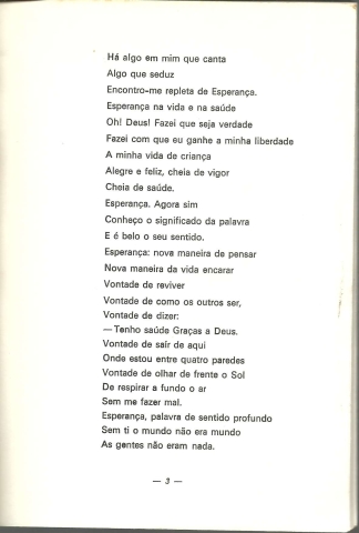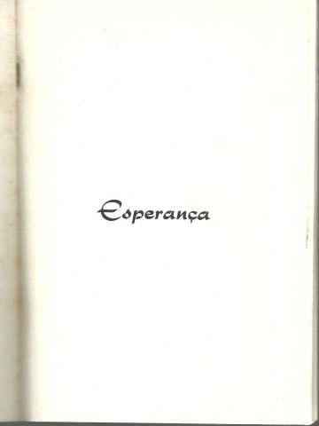 ESPERANÇA. Poemas. *** Fernanda Bernardes de Miranda *** [Sem ind. de local]: [Sem ind. de editor: provável Edição da Autora], [Sem ind. de ano: provavelmente próximo de 1974, que é a data do último poema do livro]. (Composto e Impresso na Tip. Tondelense). (22 x 15,5 cm.) com 45 + [3] pp. Capa flexível. Exemplar razoável. Capa com marcas de manuseamento, pequenos vincos, manchas de acidez (especialmente concentradas na contracapa), pequenas perdas de cor em alguns pontos e um pouco gasta nas margens e na lombada, onde apresenta mesmo algumas esfoladelas. Globalmente, apesar de acusar o uso e algum envelhecimento está ainda apresentável. Páginas em bom estado e limpas, embora apresentem um ligeiro amarelecimento, próprio do papel e da passagem do tempo. *** Primeira e única edição deste livro de poemas, que deve ter constituído a estreia da Autora, quando seria ainda jovem e cuja carreira literária desconheço se teve continuidade. O livro recolhe dez poemas intitulados: Esperança, O Milagre das Rosas, Sonho Dourado, Borboleta, Oração no Monte, A Vida, Conceito de Felicidade, Pôr do Sol, Virgem Maria, Carnaval. Invulgar. *** Portes: envio gratuito em correio normal (tarifa especial para livros) * envio em correio registado: 1,70