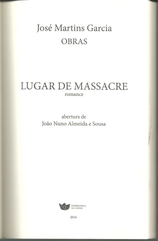 LUGAR DE MASSACRE. Romance. *** José Martins Garcia *** Abertura de João Nuno Almeida e Sousa *** Lajes do Pico: Companhia das Ilhas, 2016. Colecção: Biblioteca Açoriana – 3; Obras de José Martins Garcia – 2. (22 x 14 cm.) com 167 + [1] pp. Capa flexível, com badanas. Bom exemplar. Capa com pequenas marcas de manuseamento e um ligeiro desgaste nas margens, encontrando-se ainda em bom estado e limpa. Páginas globalmente bem conservadas e limpas, apresentando apenas algumas manchas ligeiras (muito raras e de muito reduzida importância). *** Primeira edição na editora e na colecção deste romance originalmente publicado em 1975, que teve uma segunda edição em 1991 (do Círculo de Leitores) e uma terceira, em 1996 (Salamandra), sendo, esta, portanto, a sua quarta edição absoluta. É a mais conhecida obra do Autor, que constitui uma “sátira delirante” à Guerra Colonial. Lê-se no prefácio: «O registo lavrado neste Lugar de Massacre é o da cartografia de «uma juventude condenada», reduzida a arrastar-se em «dias de degredo» na omnipresente lama da Guiné, emparedada sem paredes num mato «fora do mundo», tendo «por esperança algum milagre» que falha, exausta, alucinada, «borrando-se nas armadilhas chamadas latrinas, quando não na merda do próprio susto», embrutecida pelo «whisky torrencial» e pela fornicação desbragada, paga a «um peso por cada pancada», vítima dos desmandos do regime e das «panasquices» de um comandante homossexual «rechonchudo e meigo» que «tanto mirava cu como braguilha» e geria as posições de guerra «de gatas sobre o mapa, fixando bandeirinhas» com o seu «efebo eleito». Um reles e pútrido «mapa da vitória» de uma guerra que «Não é para perder, mas também não é para ganhar. É só para empatar».» Tiragem de apenas 750 exemplares. *** Portes: envio gratuito em correio normal (tarifa especial para livros) * envio em correio registado: 1,70