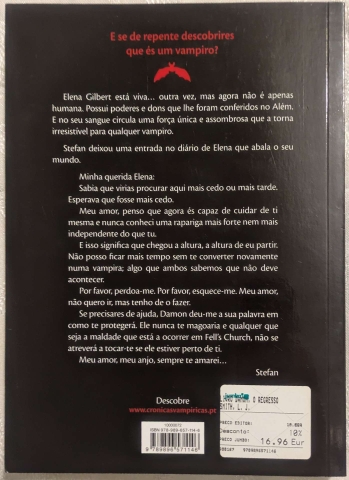 Elena Gilbert está viva... outra vez, mas agora não é apenas humana. Possui poderes e dons que lhe foram conferidos no Além. E no seu sangue circula uma força única e assombrosa que a torna irresistível para qualquer vampiro.