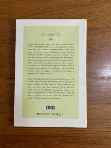 Todos sabemos que o dinheiro faz girar o mundo, e todos temos a secreta convicção de que nos pode trazer a felici-dade. Mas poucos de nós conhecem a fórmula secreta que gere a dinâmica do enriquecimento. Richard Templar conhece-a a fundo e partilha-a connosco nesta obra, sob a forma de 100 regras de ouro, analisando os comportamen-tos, as perspectivas, os estilos de vida e o know-how financeiro subjacentes ao processo que conduz à prosperidade.