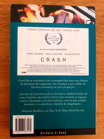 Publicado originalmente em 1973, Crash continua a ser um dos romances mais chocantes do século XX, tendo sido adaptado para cinema, sob o mesmo título e com igual controvérsia, por David Cronenberg.