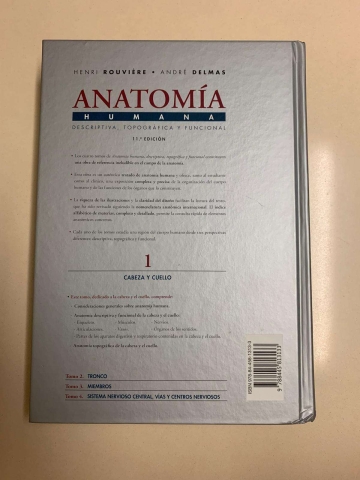 Este primer tomo está dedicado al estudio de la cabeza y cuello. Con el objetivo de facilitar un enfoque didáctico y entendedor, la obra incluye una parte de anatomía funcional que aclara de forma más activa la parte descriptiva. Asimismo, aporta iconografía muy precisa y clara que incluye imágenes fotográficas, radiográficas, tomodensitométricas y las obtenidas por resonancia magnética nuclear. Incorporándose en el Tomo 3 y 4 un pequeño atlas de imágenes por RM.