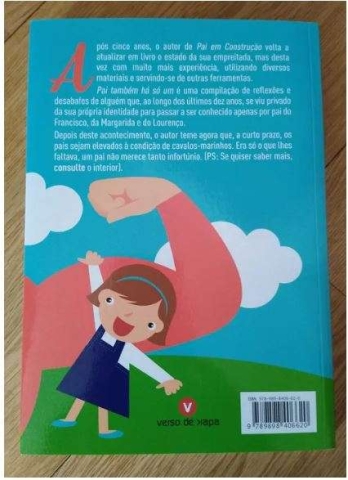 Após cinco anos, o autor de "Pai em Construção" volta a atualizar em livro o estado da sua empreitada mas desta vez com muito mais experiência, utilizando diversos materiais e servindo-se de outras ferramentas. "Pai também há só um" é uma compilação de reflexões e desabafos de alguém que, ao longo dos últimos dez anos, se viu privado da sua própria identidade para passar a ser conhecido apenas por pai do Francisco, da Margarida e do Lourenço. Depois deste acontecimento, o autor teme agora que, a curto prazo, os pais sejam elevados à condição de Cavalos Marinhos. Era só o que lhes faltava, um pai não merece tanto infortúnio. (PS: Se quiser saber mais, consulte o interior)