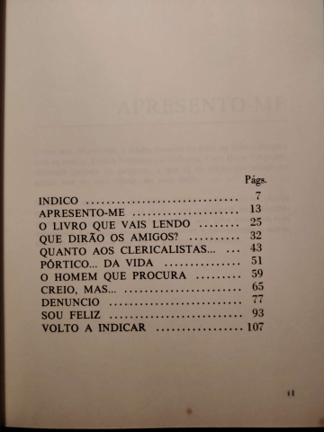 Neste livro, o padre Carlos Alberto de Castro Ferreira, falecido em 2018 e que foi pároco de Pinhal Novo, indica-nos, num registo aberto, franco e amigo, o que viveu e conviveu na sequência e na corrente da vida, com os dias e as noites, os claros e os escuros, os altos e os baixos, as retas e as curvas, sucessos e insucessos. Escrito num registo de digressão em que o autor e o leitor vão viajando juntos pelas realidades da vida, este livro funciona como uma inspiração para todos aqueles que acreditam que o amor tudo pode vencer e que é o melhor dos mestres.