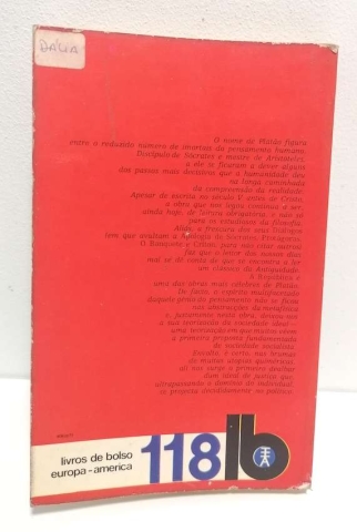 A República, de Platão. Diálogos - I. Colecção Livros de Bolso Europa-América n.º 118.
