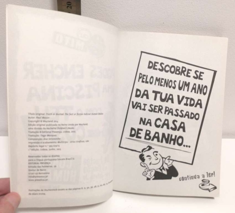 Passas um ano da tua vida na casa de banho. Fumar leva a que os dentes caiam. O teu corpo contém ferro suficiente para se fazer um prego. Ler debaixo do cobertor dá cabo dos olhos.