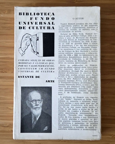 Talbot Faulkner Hamlin (1889-1956) foi arquiteto e, sobretudo, um historiador e professor de arquitetura ligado à Columbia University, onde também dirigiu a Avery Architectural Library; destacou-se ainda como divulgador e ensaísta, com impacto na forma como várias gerações aprenderam a “ver” arquitetura. Em 1956, recebeu o Prémio Pulitzer pela sua biografia de Benjamin Henry Latrobe, o autor do projeto do Capitólio, em Washington.