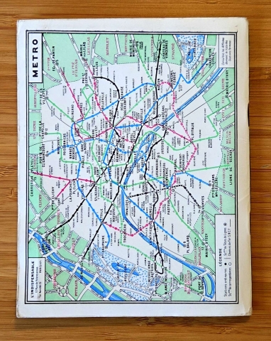 Le guide se distingue aussi par ses pages “services” (transports, adresses utiles, etc.) et par une section savoureuse sur la gastronomie, avec une liste de restaurants classés. Point fort pour les collectionneurs et amateurs de cartographie : une grande carte dépliante en couleurs (env. 52,5 × 73 cm), complétée par un schéma du métro en quatrième de couverture.