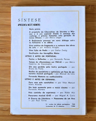 Síntese: Cadernos Ibéricos de Cultura, Informação e Crítica (n.º 1) é um raro testemunho da ambição de diálogo cultural ibérico no início dos anos 1960. Editada em Lisboa pela Editorial Lux, esta publicação saiu em edições separadas em português e castelhano, com direção de Azevedo Martins e Víctor Aúz. Embora, à primeira vista, possa sugerir uma revista regular, a própria “Síntese” apresentou-se como não periódica, funcionando antes como um “caderno” numerado e tematicamente aberto, dedicado à cultura, às artes e também à ciência.
