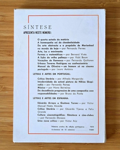 Síntese: Cadernos Ibéricos de Cultura, Informação e Crítica (n.º 3) é uma rara publicação cultural luso-espanhola dos anos 60, dirigida em conjunto por Azevedo Martins (Portugal) e Víctor Aúz (Espanha), pensada como um espaço de encontro ibérico para cruzar ideias, artes e pensamento crítico.