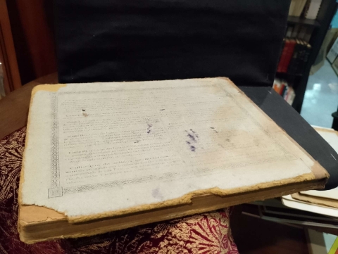 Livro de capa dura com pequenas falhas nas margens e lombada com marcas do tempo