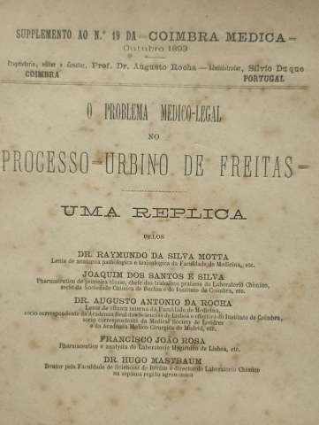 "Suplemento ao nº 19 da - Coimbra Medica - Outubro 1893"
