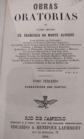 Obras Oratorias Pe Mestre Fr, Francisco do Monte Alverne 1854