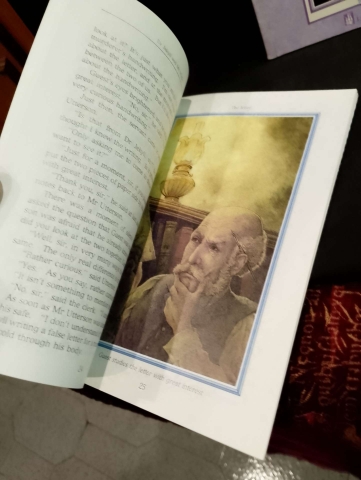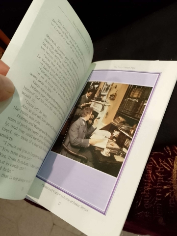 O exemplar Three Adventures of Sherlock Holmes apresenta pequena assinatura de posse, na primeira página