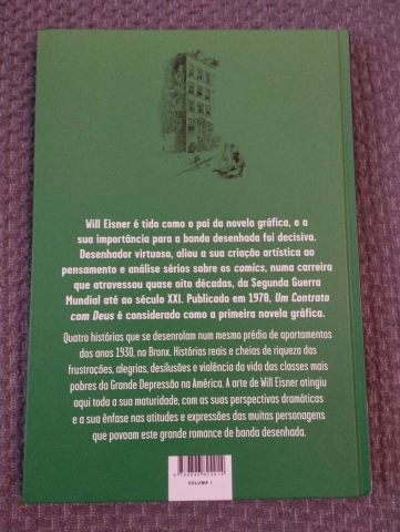 Quatro histórias que se desenrolam num mesmo prédio de apartamentos dos anos 1930, no Bronx. Histórias reais e cheias de riqueza das frustrações, alegrias, desilusões e violência da vida das classes mais pobres da Grande Depressão na América. A arte de Will Eisner atingiu aqui toda a sua maturidade, com as suas perspectivas dramáticas e a sua ênfase nas atitudes e expressões das muitas personagens que povoam este grande romance de banda desenhada. Will Eisner é tido como o pai da novela gráfica, e a sua importância para a banda desenhada foi decisiva. Desenhador virtuoso, aliou a sua criação arítstica ao pensamento e análise sérios sobre os comics, numa carreira que atravessou quase oito décadas, da Segunda Guerra Mundial até ao século XXI. Publicado em 1978, "Um Contrato com Deus" é considerado como a primeira novela gráfica.
