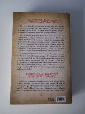 História Secreta do Mundo, de Jonathan Black, resulta de mais de vinte anos de pesquisa e dá-nos um guia completo e definitivo da História do mundo e da Humanidade. Partindo dos ensinamentos das antigas escolas de mistérios e sociedades secretas - preservados ao longo dos séculos por algumas (poucas) pessoas e grupos como os Templários, os Maçons, os Rosacruzes ou os Illuminati -, recupera as origens do pensamento filosófico e esotérico, e reconta a História da Terra e das civilizações a partir de uma visão alternativa dos acontecimentos.