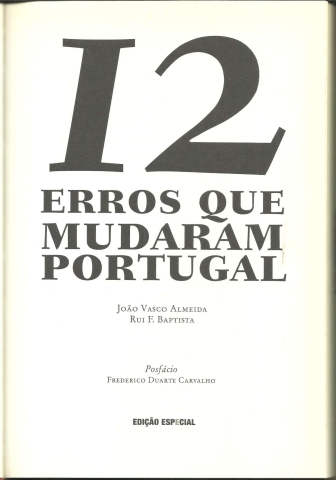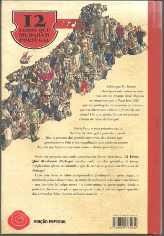 12 ERROS QUE MUDARAM PORTUGAL. *** João Vasco Almeida – Rui F. Baptista *** Posfácio: Frederico Duarte Carvalho *** Ilustrações: Ricardo Cabral *** Revisão: Rita Almeida Simões *** Capa e paginação: Ilídio J. B. Vasco *** Lisboa: Guerra e Paz, Editores S.A., 2008. (24,5 x 17 cm.) com 190 + [2] pp. Com algumas ilustrações a p/b.. Capa dura. Bom exemplar. Capa com mínimas marcas de manuseamento, encontrando-se em bom estado e limpa. Páginas bem conservadas e limpas, apresentando apenas um ligeiro amarelecimento, próprio do papel. *** Primeira edição deste livro que constitui um divertido repositório de factos insólitos e curiosidades relacionados com um lado “menos glorioso” da história de Portugal. Lê-se na contracapa: «Sabia que D. Afonso Henriques não bateu na mãe mas sim no amante dela? Alguma vez imaginou que o Papa João XXI, que era português, se enganou no número que escolheu para colocar à frente do seu nome? Ou que, ainda, foi um rei o maior criador de ratos da Europa? Neste livro, e pela primeira vez, a História de Portugal é passada a pente fino, à procura das grandes mentiras, dos idiotas que governaram o País e das trapalhadas que estão na génese daquilo que hoje conhecemos como o «bravo povo lusitano». Fruto da pesquisa nas mais conceituadas fontes históricas, 12 Erros Que Mudaram Portugal analisa cada um dos episódios de forma simples mas eficaz, mostrando o que de errado se passou em 800 anos de Portugal. Com este livro, o leitor compreenderá finalmente o «gene tuga», a tendência para o desenrasca, as raízes do colesterol e do cancro do tabaco – que também foi culpa nossa – e como nunca os governantes, desde o princípio, tiveram um plano que se aproveitasse. A não ser aquela questão das caravelas. Mas, mesmo aí houve asneira...» (Índice na imagem 4). *** Portes: envio gratuito em correio normal (tarifa especial para livros) * envio em correio registado: 1,70
