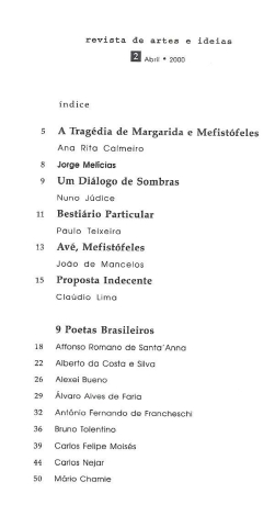 ALMA AZUL. Revista de Artes e Ideias. N.º 2 – Abril. 2000. *** Directora: Elsa Ligeiro *** [Coimbra]: Alma Azul, 2000. (24 x 17 cm.) com 55 + [9] pp. Com algumas ilustrações a p/b. Capa flexível, com badanas. Bom exemplar. Capa com mínimas marcas de manuseamento, encontrando-se bem conservada e limpa. Páginas em bom estado e limpas. *** Segundo número desta revista que além do tema principal: o mito de Fausto (a propósito do qual inclui textos e poemas de vários autores), inclui também uma breve antologia de “9 Poetas Brasileiros”. (Índice na imagem 3). *** Portes: envio gratuito em correio normal (tarifa especial para livros) * envio em correio registado: 1,70