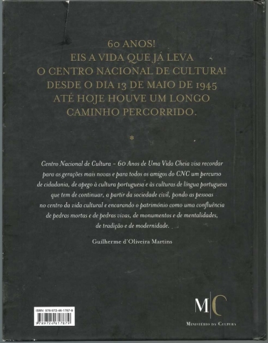CENTRO NACIONAL DE CULTURA. 60 Anos de uma Vida Cheia. *** Organização e Coordenação: Centro Nacional de Cultura *** Textos: Guilherme d’Oliveira Martins, Gonçalo Ribeiro Telles, Marcos Soromenho Santos, Alberto Vaz da Silva, Maria Calado *** Imagens: Arquivo histórico CNC *** Lisboa: Centro Nacional de Cultura; Cruz Quebrada: Casa das Letras, 2008. (26,5 x 20,5 cm.) com 165 + [3] pp. Profusamente ilustrado a cores e a p/b.. Capa dura. Exemplar razoável. Capa com marcas de manuseamento, apresentando algumas arranhadelas e um pequeno desgaste nos cantos exteriores e nas extremidades da lombada. Apesar disso, de um modo geral, está ainda em bom estado e limpa. Páginas bem conservadas e limpas. *** Primeira edição desta obra que traça o percurso dos primeiro 60 anos de existência do Centro Nacional de Cultura e da sua notável acção em prol da cultura portuguesa e não só. (Índice na imagem 4). Impresso em bom papel. *** Portes: envio gratuito em correio normal (tarifa especial para livros) * envio em correio registado: 1,90
