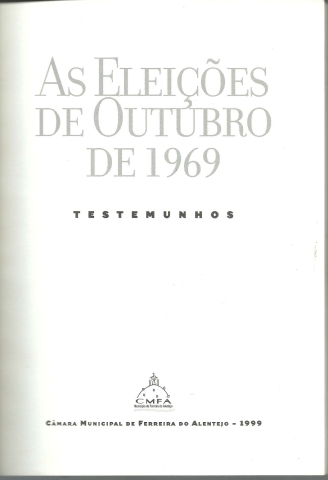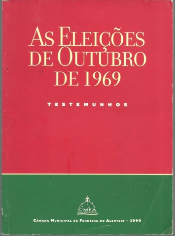 AS ELEIÇÕES DE OUTUBRO DE 1969 – TESTEMUNHOS. *** Testemunhos de: Luís A. Pita Ameixa; Jorge Sampaio; Joaquim Palmeiro; Álvaro Monteiro; Aníbal Coelho da Costa; António Arnaut; António Reis; Jaime Gralheiro; Jorge Tavares Lopes; José Sampaio; José Tengarrinha; J. Santos Simões; Manuel João Vieira; Margarida Malvar; Maria de Jesus Barroso Soares; Mário Soares; Urbano Tavares Rodrigues *** Agradecimentos pela cedência de fotografias a: Diário de Notícias; Manuel João Vieira; Inácio Ludgero; Margarida Malvar e António Reis *** Coordenação da edição: João Paulo Velez e Pedro Ferro *** Ferreira do Alentejo: Câmara Municipal de Ferreira do Alentejo, 1999. (23,5 x 17 cm.) com 159 + [1] pp. Com muitas ilustrações a p/b.. Capa flexível. Exemplar razoável. Capa com marcas de manuseamento, alguns vincos, pequenas perdas de cor em alguns pontos e um pouco gasta nas margens e na lombada. Apesar de evidenciar algum uso, de um modo geral, está ainda bastante apresentável. Páginas globalmente bem conservadas e limpas, apresentando apenas uma ou outra pequena mancha (raras) e algumas marcas de uso pouco significativas. *** Primeira edição deste livro que procura assinalar o 30.º aniversário das eleições de 26 de Outubro de 1969, as primeiras realizadas após o afastamento de Salazar do poder e nas quais puderam paritcipar forças da oposição democrática. Este livro reúne fundamentalmente testemunhos de alguns candidatos das listas das várias correntes da oposição democrática nas eleições de 1969, aos quais se segue um apêndice documental, onde se «reproduzem em fac-símile informações gerais sobre o processo eleitoral de Outubro de 1969, as biografias resumidas dos candidatos, rejeições e indeferimentos de candidaturas, comunicados emitidos a propósito dessas rejeições e indeferimentos, assim como os resultados oficiais do acto eleitoral» (elementos incluídos no livro As eleições de 1969, editado em Maio de 1970 pelas Publicações Europa-América). Interessante e pouco vulgar. Tiragem de 1000 exemplares. *** Portes: envio gratuito em correio normal (tarifa especial para livros) * envio em correio registado: 1,70