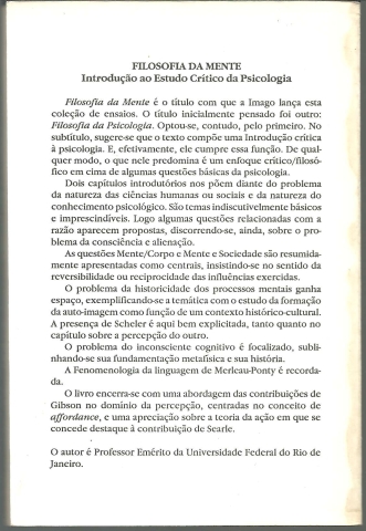 HISTÓRIA DAS IDÉIAS PSICOLÓGICAS. *** Antonio Gomes Penna [Prof. Emérito da UFRJ] *** Rio de Janeiro: Imago Editora, 1991. (20,5 x 14 cm.) com 151 + [1] pp. Capa flexível, com badanas. Exemplar razoável. Capa com marcas de manuseamento, algumas manchas, vincos discretos e um ligeiro desgaste nas margens e na lombada, que apresenta também vincos de abertura. Apesar de tudo, de um modo geral, está ainda em boas condições. Páginas globalmente bem conservadas, embora apresentem um tom um pouco amarelecido e uma ou outra pequena mancha (raras). Várias páginas apresentam, no entanto, numerosos sublinhados a lápis. *** 2.ª edição deste livro que não pretende ser uma história da psicologia, mas, apenas, uma história das ideias psicológicas. Organizado em três partes, «a parte inicial deste livro é dedicada a comentários epistemológicos e nela são focalizados os problemas básicos da história das ciências, tais como o dos precursores, do externalismo versus internalismo, do continuísmo versus descontinuísmo, e o problema da periodização. A questão da cientificidade da psicologia é colocada, esboçando-se um breve estudo dos critérios de periodização em psicologia e a questão da psicologia histórica, cuja caracterização como área complementar da psicologia transcultural é proposta. A apresentação da história das idéias psicológicas propriamente ditas tem início na segunda parte, em duas grandes secções. A primeira examina a contribuição dos grandes filósofos, proposta antes da emergência da psicologia como ciência (...) A segunda seção fixa-se no pensamento de alguns filósofos que pretenderam produzir o que Piaget chama de psicologia filosófica, ou seja, o tipo de psicologia que se pretende mais rigorosa do que a denominada de científica e experimental. (...) Na terceira e última parte do livro é estudada a emergência da psicologia como conhecimento científico. Nela focalizam-se, de modo sumário, as condições que concorreram para a sua existência. São mencionadas então algumas figuras que já se inserem numa história da psicologia como ciência, como por exemplo Darwin, Wundt, Ebbinghaus, Fechner e William James.» (Índice nas imagens 3 e 4). *** Portes: envio gratuito em correio normal (tarifa especial para livros) * envio em correio registado: 1,70