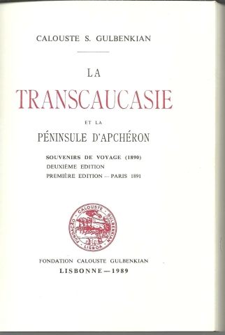 LA TRANSCAUCASIE ET LA PÉNINSULE D’APCHÉRON. Souvenirs de Voyage (1890). *** Calouste S. Gulbenkian *** Lisbonne: Fondation Calouste Gulbenkian, 1989. (19 x 13 cm.) com XXXI + [1] + 336 pp. com duas ilustrações a p/b. + uma folha desdobrável com um mapa a cores (Caucasie). Capa flexível. Exemplar razoável. Capa com marcas de manuseamento, algumas manchas e com um ligeiro desgaste nas margens e na lombada, encontrando-se, ainda assim, de um modo geral, em boas condições. Páginas bem conservadas e limpas. *** Julgo tratar-se da segunda edição absoluta (a primeira edição portuguesa, embora em língua francesa), do único livro publicado por Calouste Gulbenkian, originalmente editado em Paris, em 1891. Tendo na génese uma viagem de formação realizada por Calouste Gulbenkian, em 1888, a Bacu [capital do actual Azerbaijão], na época o centro de produção de petróleo do Império Russo, viagem que motivou um artigo (“La Transcaucasie et le pétrole Russe”) publicado na Revue des Deux Mondes, em Maio de 1891, onde narrava as suas impressões sobre a nascente indústria petrolífera e as técnicas de produção, refinação e transporte do petróleo, este livro resultaria do desenvolvimento desse artigo, incluindo, além do exame da indústria petrolífera, um capítulo integralmente consagrado aos Tapetes do Oriente, revelando desde logo um gosto e interesse que viria a traduzir-se mais tarde na vasta colecção de arte que reuniria. Julgo que até ao presente este livro nunca foi traduzido para português, tendo já, curiosamente, sido publicada em Portugal uma tradução para inglês. Impresso em bom papel e pouco vulgar. *** Portes: envio gratuito em correio normal (tarifa especial para livros) * envio em correio registado: 1,70
