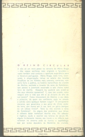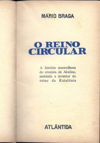 O REINO CIRCULAR. A história maravilhosa do cronista de Akalino, sentinela e inventor do reino da Katalónia. *** Mário Braga *** [Coimbra]: Atlântida, [Sem ind. de ano: 1969 (?)]. (18 x 10,5 cm.) com 159 + [1] pp. Capa flexível. Exemplar razoável. Capa com marcas de manuseamento, algumas manchas ligeiras, um pequeno vinco de pressão na contracapa, junto da lombada, e um ligeiro desgaste nas margens e na lombada, que apresenta também discretos vincos de abertura. Apesar de tudo, de um modo geral, está ainda muito apresentável. Páginas bem conservadas e limpas, embora apresentem um tom amarelecido e algumas pequenas manchas (que atingem sobretudo as margens das primeiras e das últimas), sendo tudo muito devido à qualidade do papel utilizado. Todas as páginas estão ainda por abrir. *** Primeira edição deste livro que, como se lê na contracapa, constitui «não só um novo passo na carreira de Mário Braga – dos nossos escritores mais originais e fecundos –, como também uma corajosa e oportuna experiência para a literatura portuguesa. Mário Braga, neste livro, recorrendo à alegorização, talvez na esteira das novelas filosóficas de um Voltaire mais concreto, conta-nos, num estilo forte e poético «a história maravilhosa do cronista de Akalino, sentinela e inventor do reino da Katalónia», que passou a juventude encerrado a sete chaves numa torre de marfim.» *** Portes: envio gratuito em correio normal (tarifa especial para livros) * envio em correio registado: 1,70