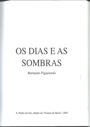 OS DIAS E AS SOMBRAS. *** Bernardo Figueiredo [pseudónimo de António Pereira Bica] *** S. Pedro do Sul: Edição da “Gazeta da Beira”, 2007. (22 x 15,5 cm.) com 89 + [7] pp. Capa dura. Exemplar razoável. Capa com marcas de manuseamento, um pequeno desgaste nas extremidades da lombada e apresentando as margens um pouco amachucadas em alguns pontos (sobretudo nos cantos superiores externos). Apesar de tudo, de um modo geral, está ainda em boas condições e limpa. Páginas bem conservadas e limpas. Numa das páginas, tem uma emenda feita com esferográfica numa “gralha”. *** Primeira edição deste livro (já teve, pelo menos, uma segunda edição, em 2015), que reúne um conjunto de textos, originalmente aparecidos nas páginas do jornal «Gazeta da Beira» e nas quais o Autor, o advogado e político António Bica, evoca, num tom muitas vezes poético, usos, costumes e figuras de outros tempos, especialmente da região de Lafões, de onde era natural (Paço de Vilharigues, concelho de Vouzela). (Índice na imagem 4). Tiragem de apenas 500 exemplares. *** Portes: envio gratuito em correio normal (tarifa especial para livros) * envio em correio registado: 1,70