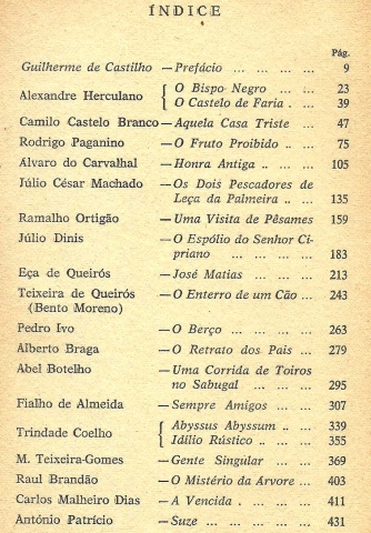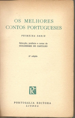 OS MELHORES CONTOS PORTUGUESES. Primeira Série. *** [Alexandre Herculano – Camilo Castelo Branco – Rodrigo Paganino – Álvaro do Carvalhal – Júlio César Machado – Ramalho Ortigão – Júlio Dinis – Eça de Queirós – Teixeira de Queirós (Bento Moreno) – Pedro Ivo – Alberto Braga – Abel Botelho – Fialho de Almeida – Trindade Coelho – M. Teixeira-Gomes – Raul Brandão – Carlos Malheiro Dias – António Patrício] *** Selecção, prefácio e notas de Guilherme de Castilho *** Lisboa: Portugália Editora, [Sem ind- de ano: provavelmente 1961 ou 1962]. Colecção: Antologias Universais; Conto – 2. (19,5 x 12,5 cm.) com [-2] + 450 + [4] pp. Capa flexível. Exemplar razoável. Capa com marcas de manuseamento, algumas manchas ligeiras e com um leve desgaste nas margens e na lombada, que apresenta também vincos de abertura. Apesar de tudo, de um modo geral, está ainda em boas condições. Páginas globalmente bem conservadas e limpas, embora apresentem um tom amarelecido (um pouco mais forte nas margens), próprio do papel. Falta, no entanto, a primeira folha (em branco) e, talvez, a última, onde costuma constar o lugar e a data de impressão, o que não prejudica o conteúdo da obra. *** 6.ª edição desta antologia, na qual Guilherme de Castilho procurou englobar alguns dos melhores contos de contistas portugueses do século XIX e do século XX, sendo que, destes últimos, apenas os autores já falecidos à data da primeira edição [início da década de 1940] e de mais real interesse. (Índice na imagem 4). Capa de João da Câmara Leme. *** Portes: envio gratuito em correio normal (tarifa especial para livros) * envio em correio registado: 1,70