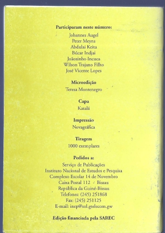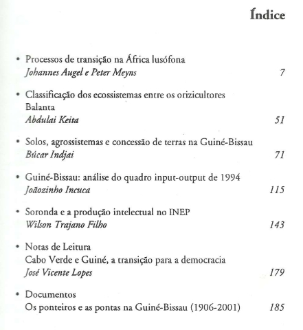 SORONDA. Revista de Estudos Guineenses. Nova Série nº 5 – Julho 2002. *** [Vários Autores] *** Bissau: Instituto Nacional de Estudos e Pesquisa, 2002. [Edição financiada pela SAREC]. (21 x 14,5 cm.) com 246 + [2] pp. Capa flexível. Exemplar razoável. Capa com marcas de manuseamento, algumas manchas e ligeiras perdas de cor em alguns pontos, mas, de um modo geral, em bom estado e limpa. Páginas limpas e bem conservadas. *** Interessante publicação guineense que recolhe um conjunto de estudos de diversa temática (política, agrícola, económica, antropológica, etc.). Índice completo na imagem 4. Tiragem de apenas 1000 exemplares. Pouco vulgar. *** Portes: envio gratuito em correio normal (tarifa especial para livros) * envio em correio registado: 1,70