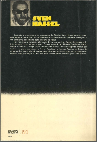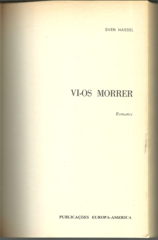 VI-OS MORRER. Romance. *** Sven Hassel *** Título original: Jeg Sa dem Dö *** Tradução de António Gonçalves, a partir da versão francesa, intitulada Je les ai vu mourir *** [Sem ind. de local: Mem Martins (?)]: Publicações Europa-América, [Sem ind. de ano: 1981 (?)]. Colecção Século XX – 191. (21 x 14 cm.) com 219 + [1] pp. Capa flexível. Exemplar razoável. Capa com marcas de manuseamento, algumas manchas ligeiras e um pequeno desgaste nas margens e na lombada, mas, globalmente, ainda em bom estado e limpa. Na parte de dentro da contracapa tem um pequeno carimbo da editora com uma data. Páginas bem conservadas e limpas, embora apresentem um tom amarelecido (ligeiramente mais forte nas margens) e algumas pequenas manchas nos cortes (sobretudo no superior), tudo muito devido à qualidade do papel. Algumas folhas apresentam pequenas faltas de papel no canto inferior externo, mas de muito reduzida importância e que parecem decorrer de imperfeições tipográficas. *** Primeira edição portuguesa deste romance, cuja acção decorre durante a Segunda Guerra Mundial no contexto da Campanha da Rússia empreendida pela Alemanha nazi. Lê-se na contracapa: «Cronista e testemunha da campanha da Rússia, Seven Hassell descreve magistralmente neste livro os sofrimentos e os feitos desses soldados entregues a um ambiente desumano pela loucura de Hitler. Por fim, vem a retirada. Morrendo de fome e de frio, fogem da tortura e do internamento nos campos russos. Encontrar-se-ão aqui heróis familiares: Porta, Heide, o fanático, o legionário saudoso de França, e esse sargento amado por todos e a quem chamavam o Velho. Perdidos na imensa Rússia, em busca da ainda activa frente alemã, acabam por alcançar as linhas após um episódio dramático, cuja descrição é uma das mais comoventes escritas por Sven Hassel.» Pseudónimo do dinamarquês Børge Willy Redsted Pedersen, Sven Hassel ficou conhecido pelos seus romances de grande sucesso sobre os militares alemães que combateram na Segunda Guerra Mundial, sendo provavelmente o autor dinamarquês mais vendido depois de Hans Christian Andersen. Hassel alegava que os seus romances se baseavam na sua experiência como veterano da “Wehrmacht” alemã, tendo combatido na Batalha de Berlim em 1945 até se render aos soviéticos. No entanto, várias investigações do pós-guerra provaram que era um impostor militar, com alegações falsas e invenções descaradas. Na verdade, Hassel (tal como Pedersen) era um criminoso dinamarquês que se alistou no Exército Alemão, mas foi preso por ter mentido sobre as suas condenações. Não foi capturado em Berlim porque estava preso na Dinamarca. No período do pós-guerra, prestou um falso testemunho que levou à prisão e ao encarceramento de pessoas inocentes. *** Portes: envio gratuito em correio normal (tarifa especial para livros) * envio em correio registado: 1,70