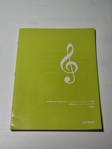 "O caderno essencial para as aulas de música, ideal para escrever notas musicais e melodias.