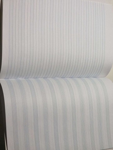 Caderno de música com páginas de linhas e de pauta para aulas de música (2° e 3° ciclos do Ensino Básico).