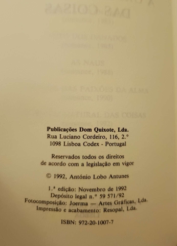 Publicações Dom Quixote, 1992, 1ª Edição.