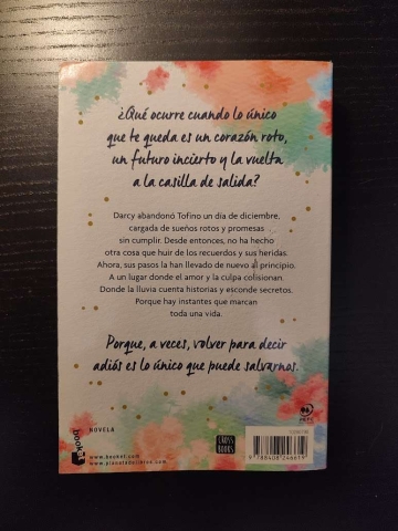 ¿Qué ocurre cuando lo único que te queda es un corazón roto, un futuro incierto y la vuelta a la casilla de salida?Darcy abandonó Tofino un día de diciembre, cargada de sueños rotos y promesas sin cumplir. Desde entonces, no ha hecho otra cosa que huir de los recuerdos y sus heridas.Ahora, sus pasos la han llevado de nuevo al principio.A un lugar donde el amor y la culpa colisionan.Donde la lluvia cuenta historias y esconde secretos.Porque hay instantes que marcan toda una vida.Porque, a veces, volver para decir adiós es lo único que puede salvarnos.