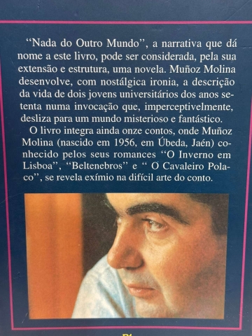 «Nada do Outro Mundo», a narrativa que dá nome a este livro, pode ser considerada, pela sua extensão e estrutura, uma novela. Muñoz Molina desenvolve, com nostálgica ironia, a descrição da vida de dois jovens universitários dos anos setenta numa invocação que, imperceptivelmente, desliza para um mundo misterioso e fantástico.
