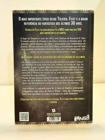 A Saga do Império é uma das obras mais famosas de Raymond E. Feist. O mundo exótico de Kelewan é um marco histórico na Fantasia épica. De Kelewan, saíram algumas das ideias e personagens mais emblemáticas da fantasia. De uma parceria com Janny Wurts, provavelmente uma das mais bem-sucedidas da literatura fantástica, nasce uma obra apaixonante. Um mundo de personagens reais, intriga política e ação..