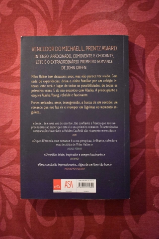 Alaska Young. Lindíssima, esperta, divertida, sensual, transtornada… e completamente fascinante. Miles Halter não podia estar mais apaixonado por ela. Mas, quando a tragédia lhe bate à porta, Miles descobre o valor e a dor de viver e amar de modo incondicional.
