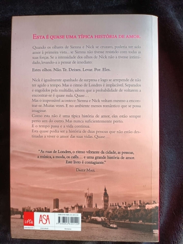 Quando os olhares de Sienna e Nick se cruzam, poderia ter sido amor à primeira vista... se Sienna não tivesse resistido com todas as suas forças. Se a intensidade dos olhos de Nick não a tivesse intimidado, levando-a a pensar de imediato: Estes olhos. Não. Te. Deixes. Levar. Por. Eles. Nick é igualmente apanhado de surpresa e logo se arrepende de não ter agido a tempo. Mas o ritmo de Londres é implacável. Separados e engolidos pela multidão, sabem que a probabilidade de voltarem a encontrar-se é quase nula. Quase...