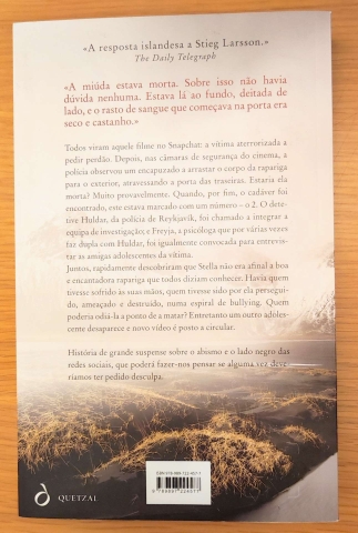 Todos viram o filme no Snapchat: a vítima aterrorizada a pedir perdão. Depois, nas câmaras de segurança do cinema, a polícia observou um encapuzado a arrastar o corpo da rapariga para o exterior, através da porta das traseiras. Estaria ela morta? Muito provavelmente. Quando, por fim, o cadáver foi encontrado, este estava marcado com um número - o 2. O detetive Huldar, da polícia de Reiquejavique, foi chamado a integrar a investigação. E Freyja, a psicóloga que faz dupla com ele em várias investigações, foi igualmente convocada para entrevistar as amigas adolescentes da vítima.