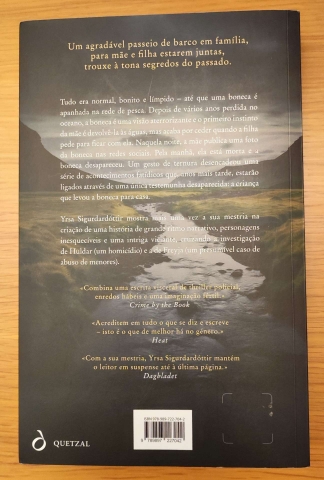 Yrsa Sigurdardóttir mostra mais uma vez a sua competência na criação de uma história de grande ritmo narrativo, personagens inesquecíveis e uma intriga viciante, cruzando a investigação de Huldar (de um assassínio) e a de Freyia (de um presumível caso de abuso de menores).