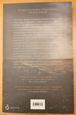 Campo de Lava é uma viagem aos labirintos e contradições da Islândia de hoje, sempre com o ritmo apaixonante dos livros de Yrsa Sigurdardóttir - uma história de violência doméstica, pornografia, dark web e vingança.